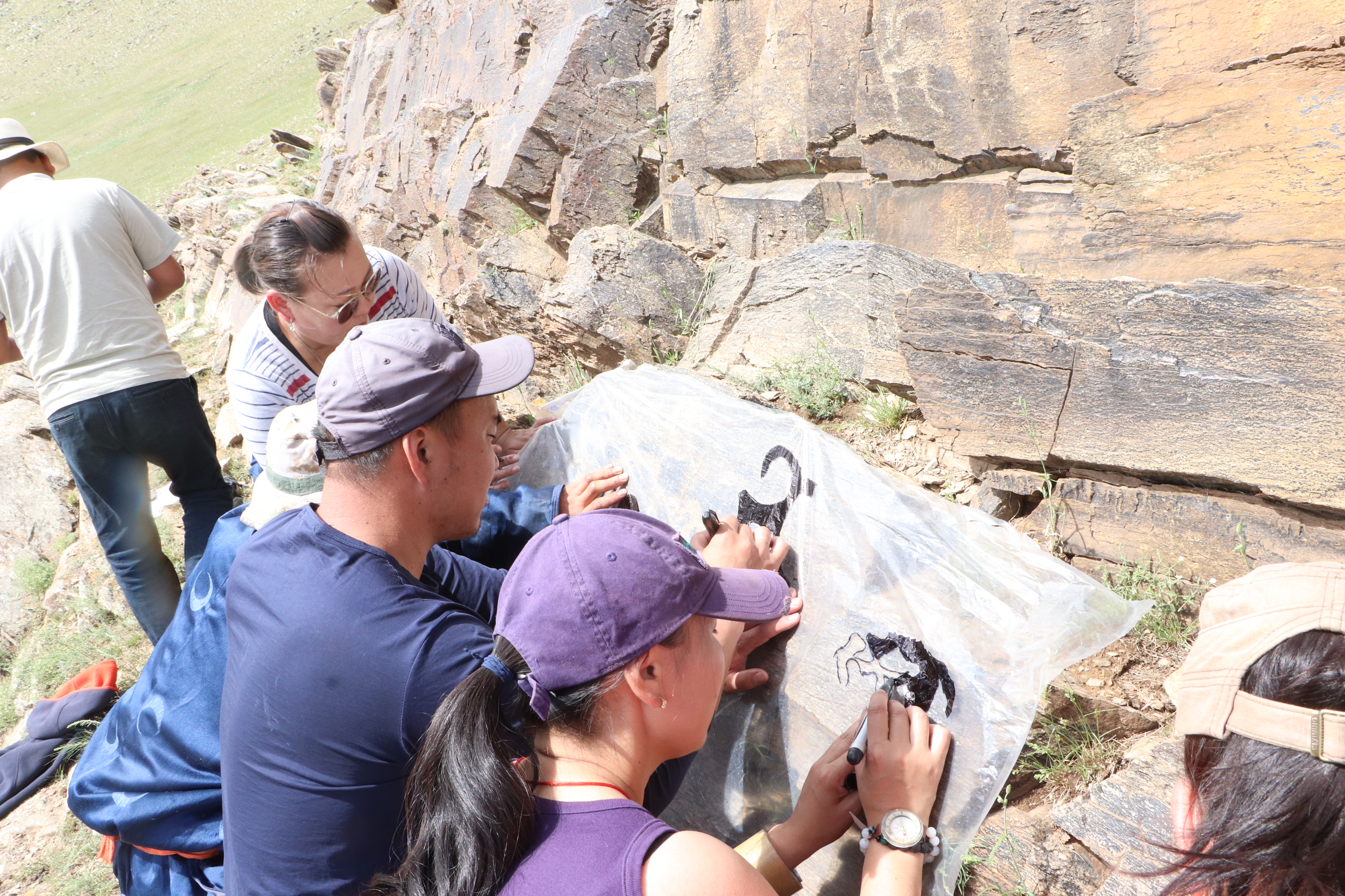 Зураг 3. Хужирт сумын нутгаас шинээр илрүүлсэн хаднаах зурагнаас хуулбар авч буй байдал.